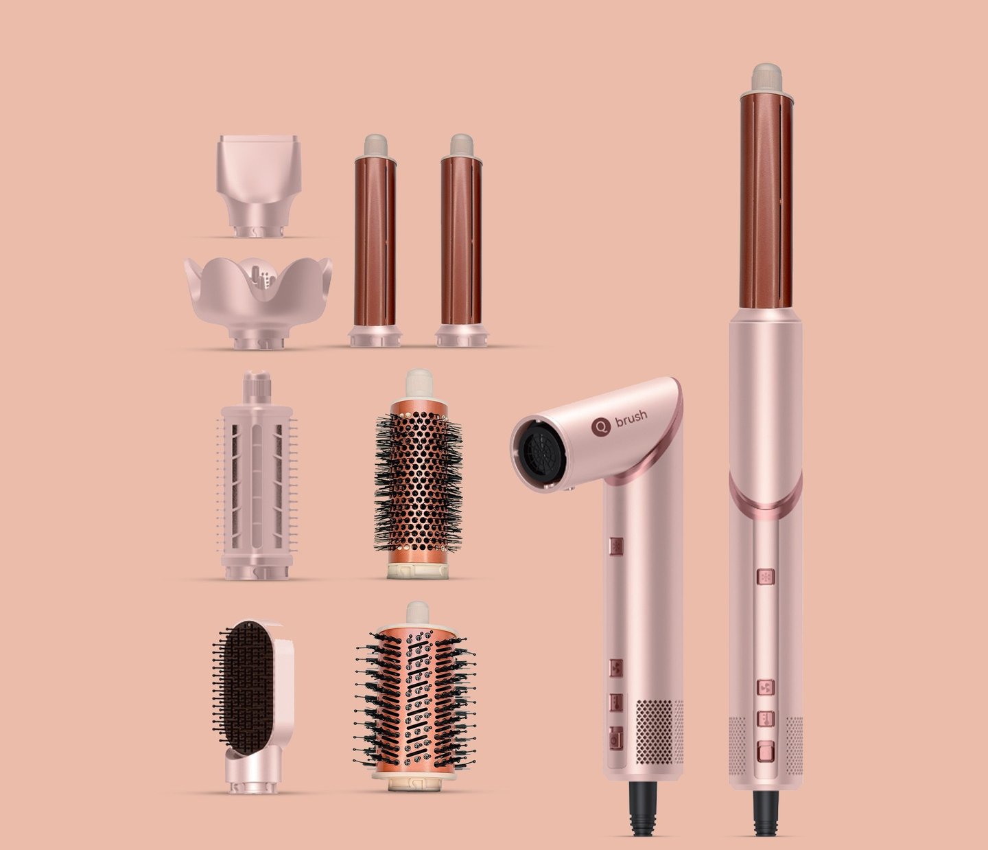 The Q brush 8-in-1 hair dryer is a styling tool that lets you dry, straighten, curl, and add volume with one device. It comes with 8 attachments, is easy to use, lightweight, and helps reduce frizz for smooth, shiny hair.