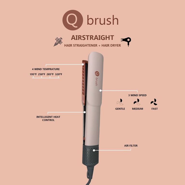The Q brush 2-in-1 Hair Straightener and Hair Dryer is a convenient styling tool that combines drying and straightening in one step. It helps you achieve smooth, frizz-free hair quickly, making it ideal for everyday use. With an easy-to-use design and effective heat settings, it delivers fast and professional-looking results from the comfort of your home.